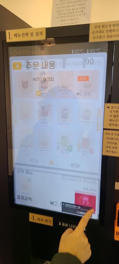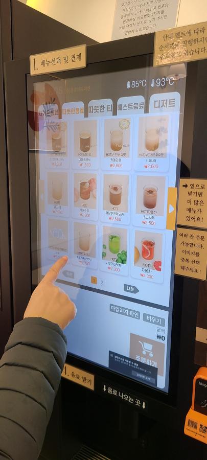 커피머신에 마시는 방법이 표시되어 있어 쉽게 주문할 수 있습니다.