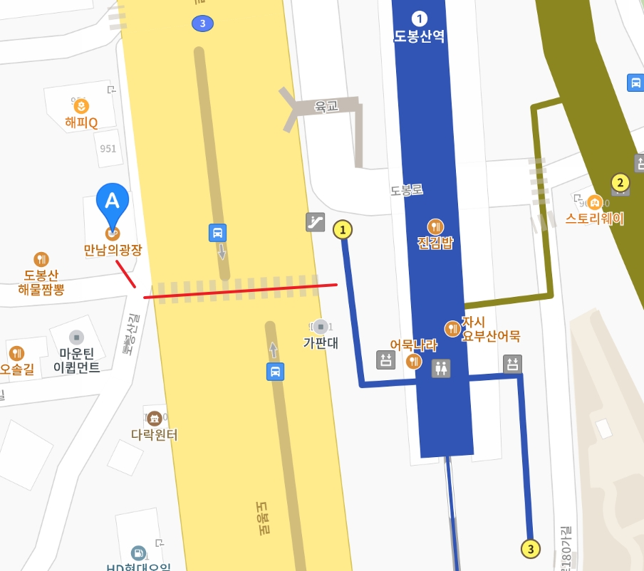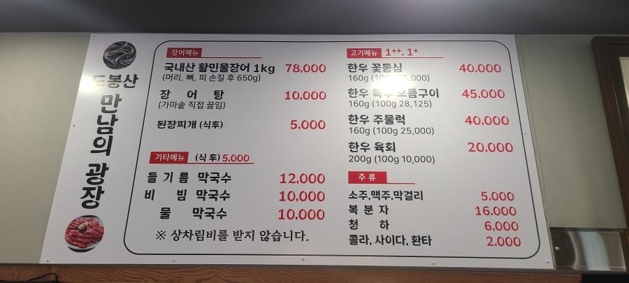 도봉산역 1번 출구에서 하차를 해서 횡단보도를 건너자마자 바로 오른편에 보이는 만남의 광장이 활장어와 한우고기로 멋지게 바뀌었네요.